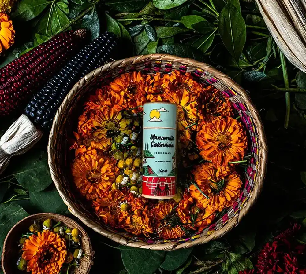 Desodorante de Manzanilla Caléndula es ideal para pieles sensibles, ayuda a aliviar nuestras axilas de rozaduras, heridas e irritaciones, dejando que tus axilas transpiren naturalmente con un aroma floral.